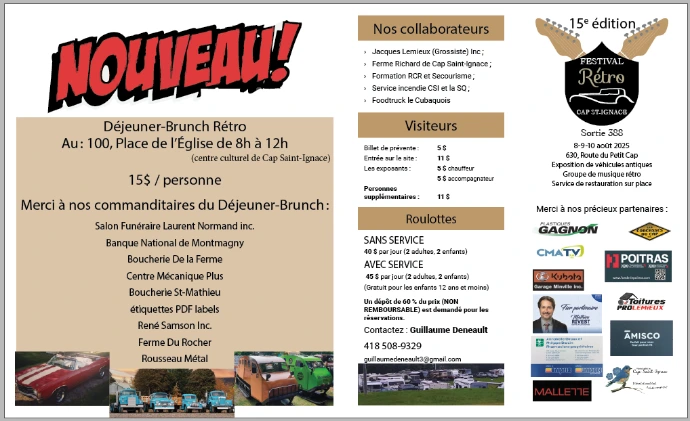Organisé par Les Marchands de bonheur, le Festival Rétro à Cap-Saint-Ignace est un événement communautaire rassembleur qui se déroule sur trois jours au cœur de la municipalité.