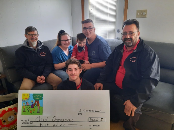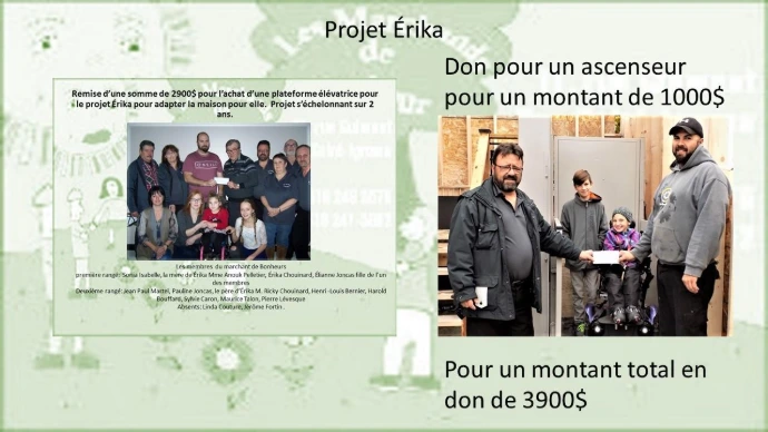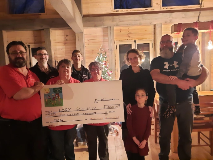 Un montant de 5250$ à été remis à la famille Gamache pour l'achat d'une rampe d'accès à la maison. Le tout sera installé par Atelier de soudure MG de Cap-St-Ignace.