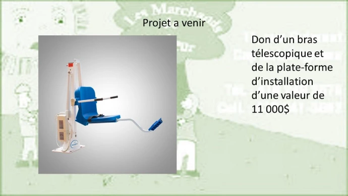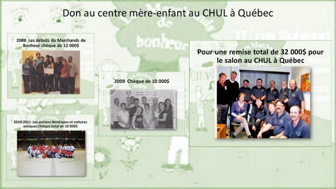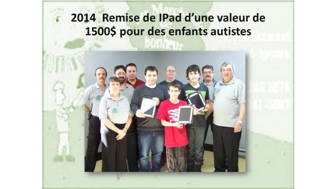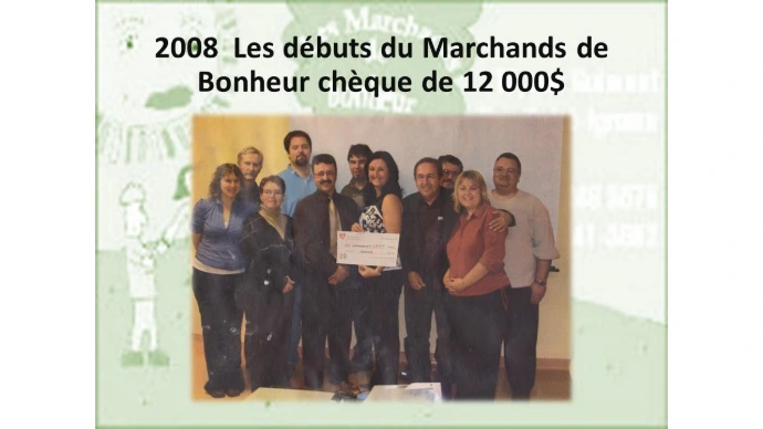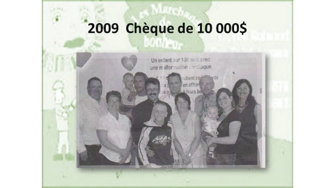 Pour la famille Gamache de Cap St-Ignace qui ont demandé de l'aide pour leur petit homme Chad, les Marchands de bonheur sont heureux de lui remettre la somme de 8000$ pour l'achat d'équipements spécialisés.