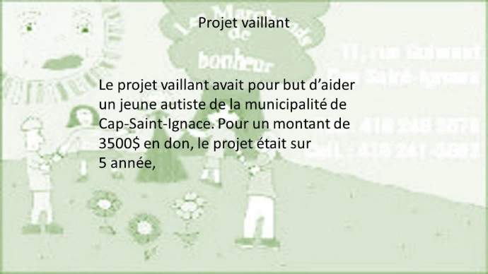 Dans notre distribution de dons 2024, la petite Élisabeth, accompagnée de sa mère, de Cap St-Ignace à reçu un montant de 300$ pour l'achat de livres pour lui permettre d'apprendre le langage par signes. Les Marchands de bonheur sont heureux de participer à ton développement d'apprentissage.