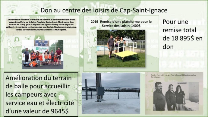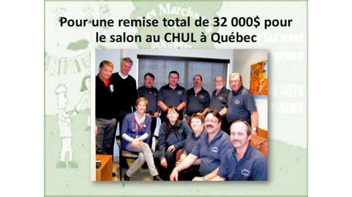 500$ au CHSLD de Cap St-Ignace qui voulait acquérir un Juke-box pour mettre de l'ambiance et ainsi faire bouger leur résidents.