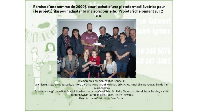 Les marchands de bonheur sont venue en aide à une jeune fille de Montmagny, don d'une valeur de 1650 dollards.