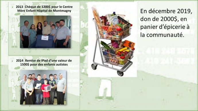 500$ à Soupe au bouton de St-Jean-Port-Joli en collaboration avec IGA Extra de Montmagny pour des paniers de Noël.